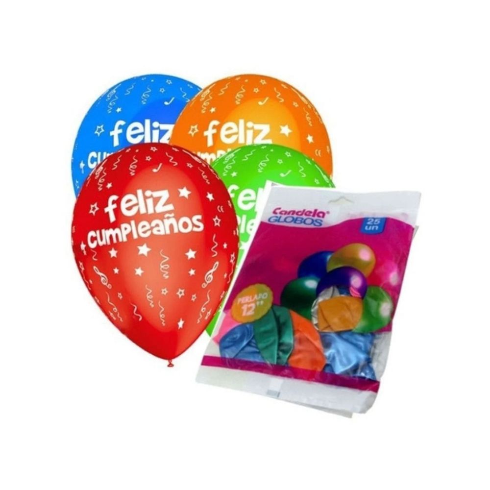 GLOBO 12" FELIZ CUMPLEAÑOS X 25 U.