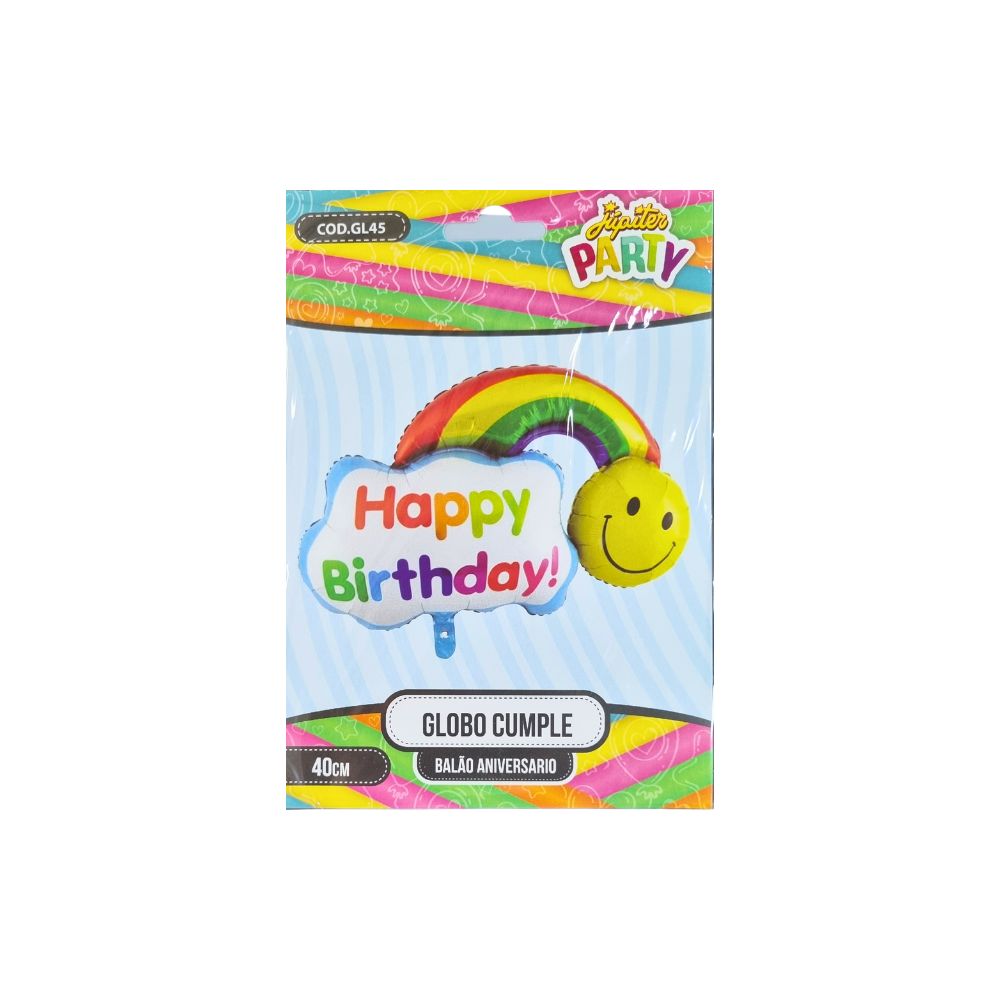 GLOBO METAL. HAPPY BIRTHDAY ARCO IRIS