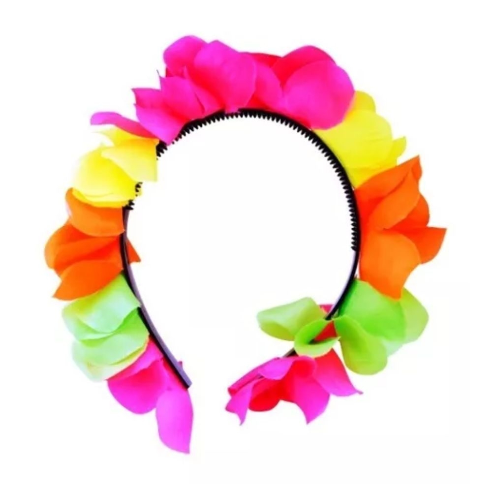 VINCHA DE FLORES HAWAI FLÚO MULTICOLOR