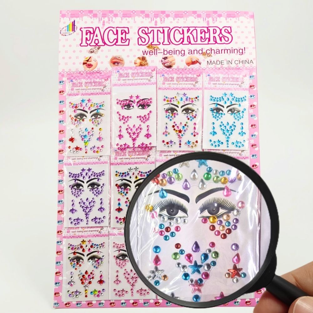 STICKER DIAMANTES P/ CARA - PLANCHA X 12 SOBRES