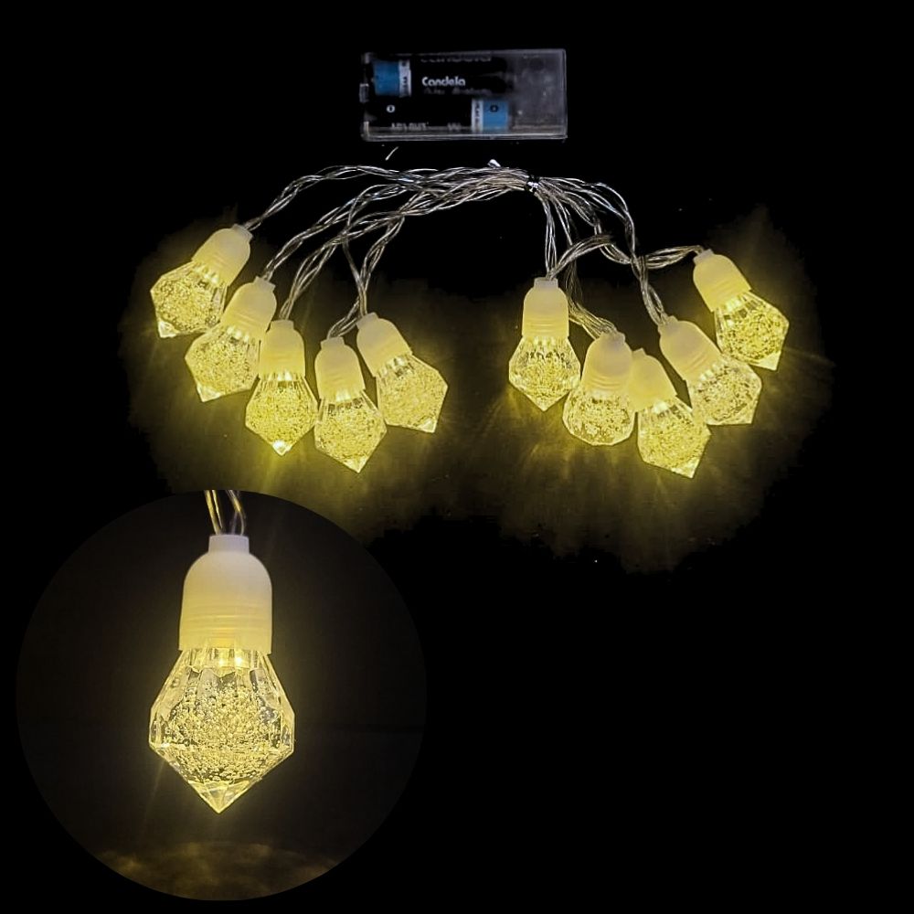 GUIRNALDA DIAMANTE TRANSPARENTE 10 LEDS (AA) CALIDO
