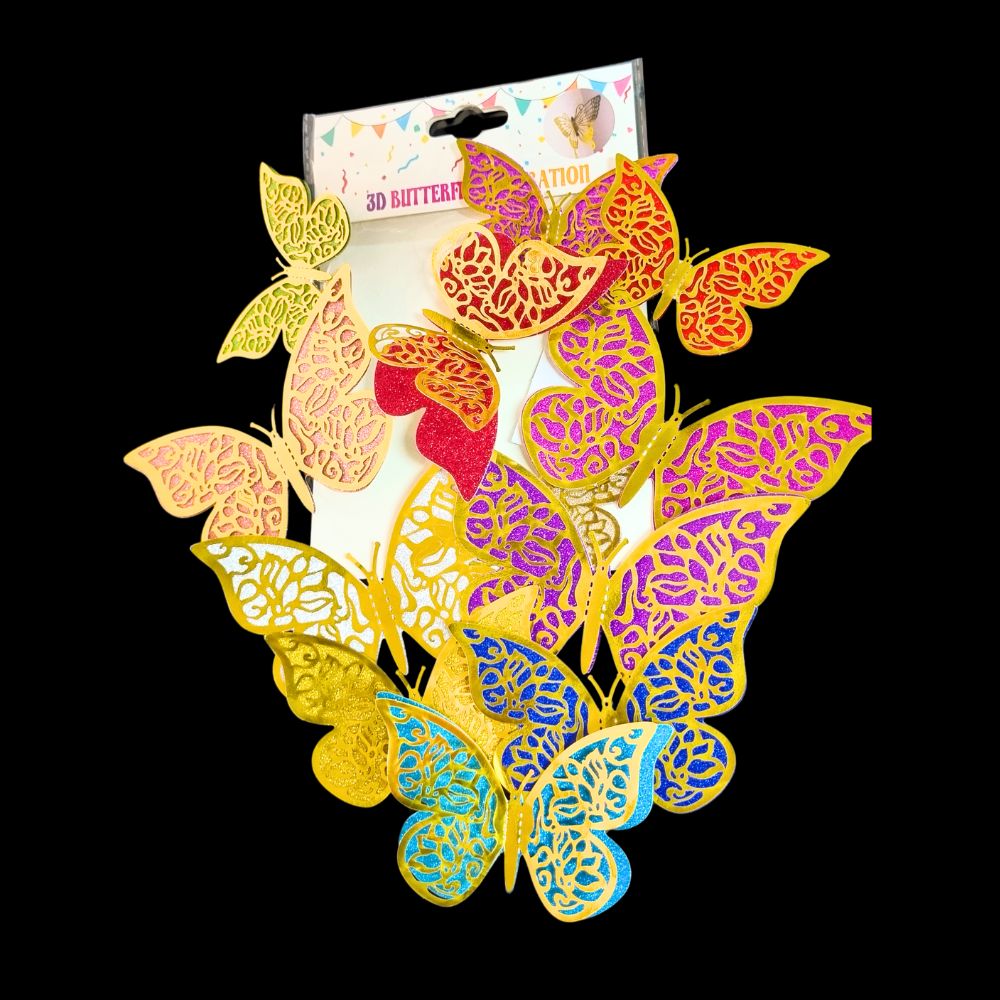 MARIPOSA 3D DECORATIVA DOBLE PAPEL GIBREADO 12U.
